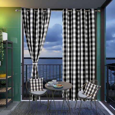 Checker cortinas impermeables para Villa Pavilion, fábrica Sun Block cortina Ojal superior para Balcón de casa al aire libre