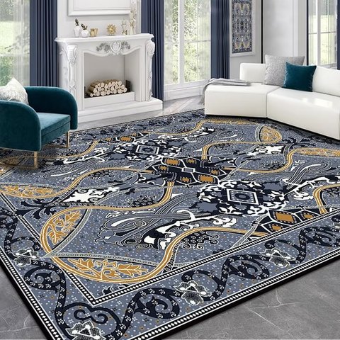 Tappeti e tappeti neri e blu grande tappeto lavabile con stampa persiana Vintage personalizzato tappeto da camera da letto